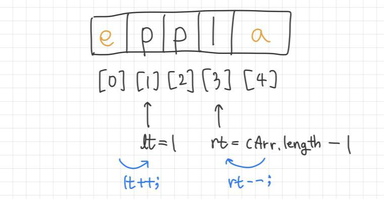 cArr[rt] = cArr[lt]; // 맨 뒷 자리에 맨 앞글자 저장