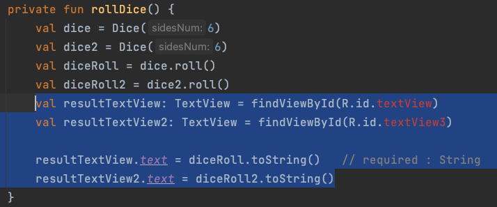 앞서 숫자가 적힌 textView를 지웠기 때문에 MainActivity.kt 에서 여전히 참조하는 TextView도 지워주자.
