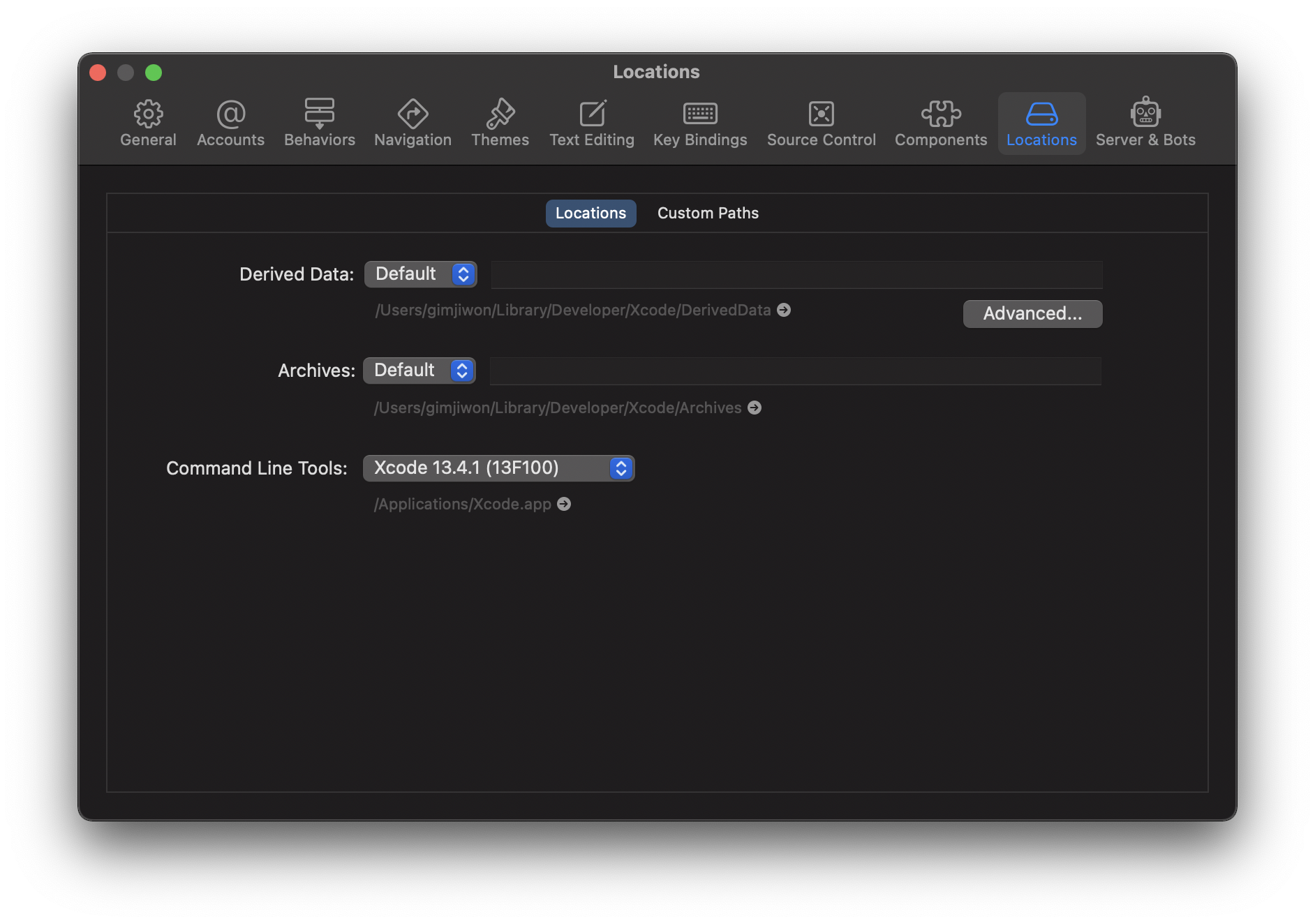 ✅ Xcode > Preferences > Locations > Command Line Tools 선택