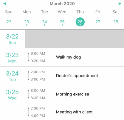 월간 캘린더가 아닌 주간 캘린더가 필요했는데, 리액트 네이티브 위클리 라이브러리 중