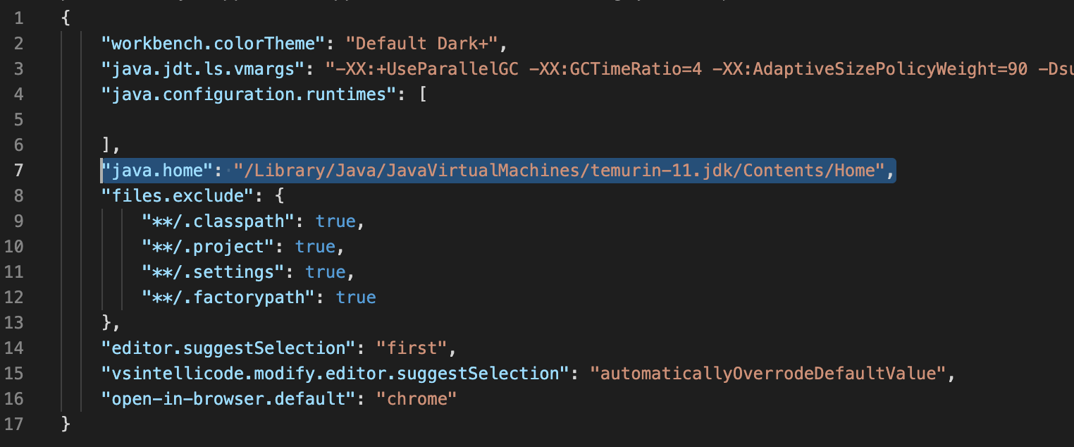 "java.home": "/Library/Java/JavaVirtualMachines/설치한JDK/Contents/Home" 추가