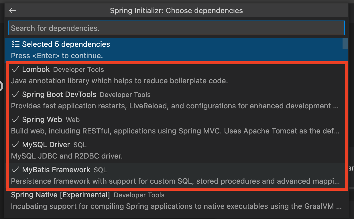 - Spring Boot DevTools : 빠른 앱 재실행 지원, 개발 지원