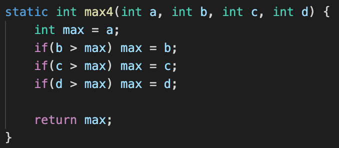 System.out.println("max3(1,2,3) = " + max3(1, 2, 3));